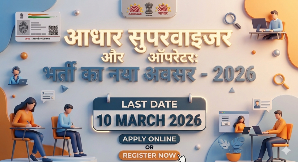 अगर आप कंप्यूटर का ज्ञान रखते हैं और आधार से जुड़ी सेवाओं में काम करना चाहते हैं, तो आपके लिए एक शानदार अवसर सामने आया है। CSC Aadhaar Supervisor Recruitment 2026 के तहत योग्य उम्मीदवारों को आधार सुपरवाइजर बनने का मौका दिया जा रहा है। इस भर्ती के माध्यम से उम्मीदवार CSC (Common Service Center) के जरिए आधार सेवाओं में काम कर सकते हैं।